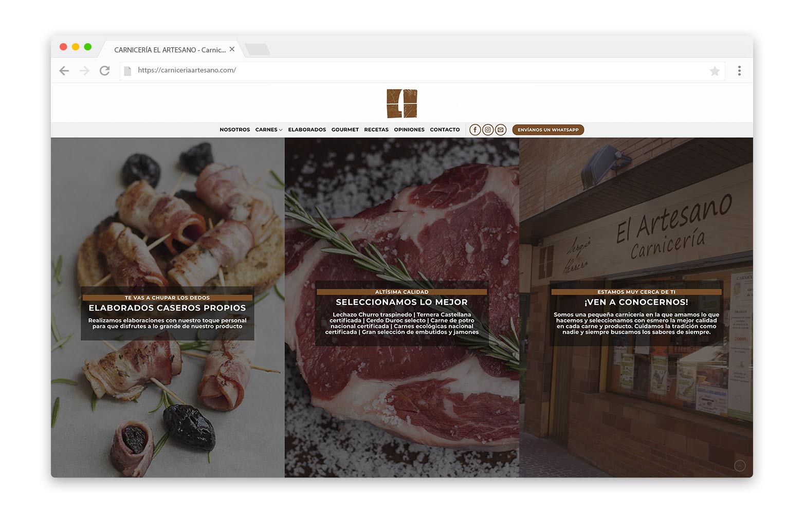 - DESCRIPCIÓN DEL TRABAJO: Diseño de la web de la carnicería de Valladolid en la que se selecciona con esmero la mejor calidad en cada carne y producto. Cuidan la tradición como nadie y siempre buscan los sabores de siempre.