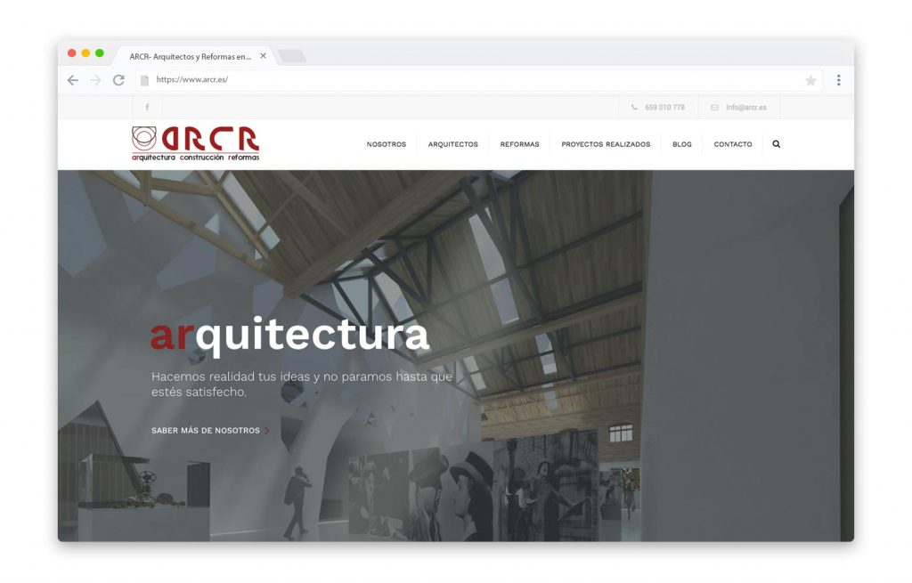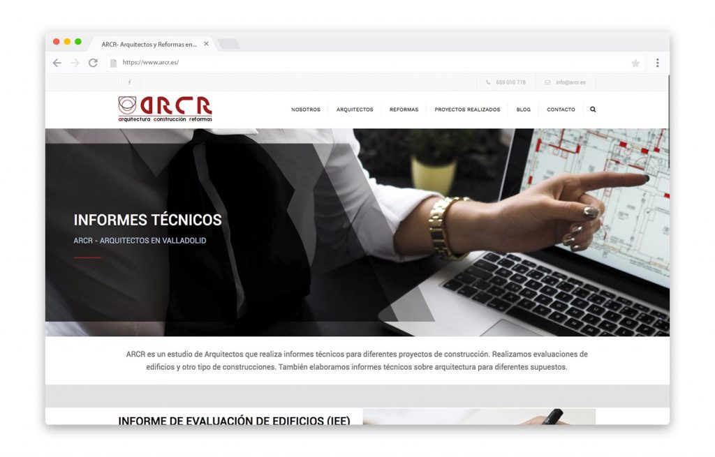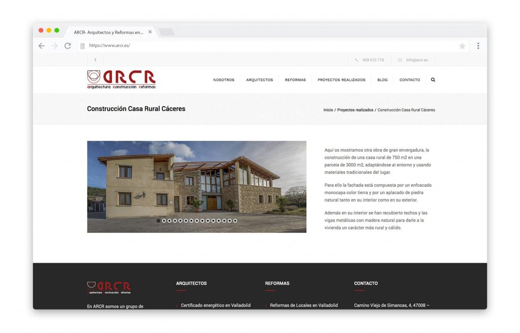 - DESCRIPCIÓN DEL TRABAJO: Realización del diseño de la web de ARCR que ofrece, a lo largo de sus páginas, toda la información sobre los servicios que la empresa ofrece a sus clientes así como información complementaria sobre los trabajos realizados y algunos consejos en su blog.