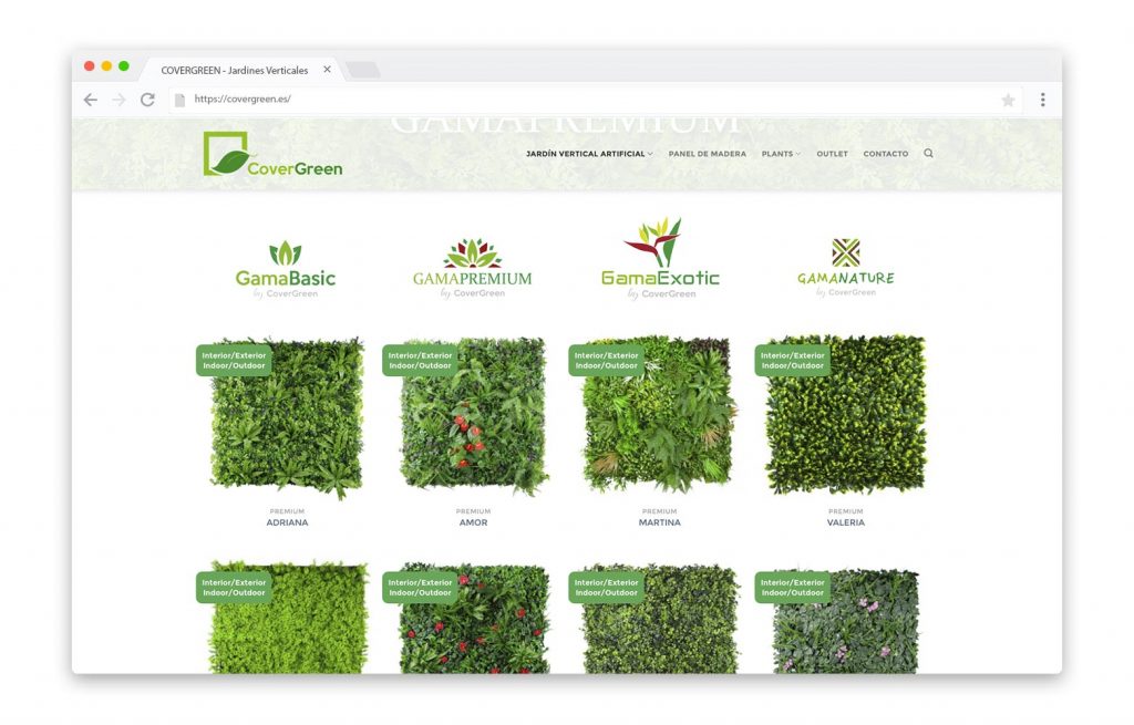- DESCRIPCIÓN DEL TRABAJO:Realización del diseño de la web de COVERGREEN en la que se integran, a modo de catálogo, los productos de la compañía con información completa de cada uno de ellos. La web dispone de un área privada exclusiva para distribuidores donde pueden consultar precios y condiciones de venta.