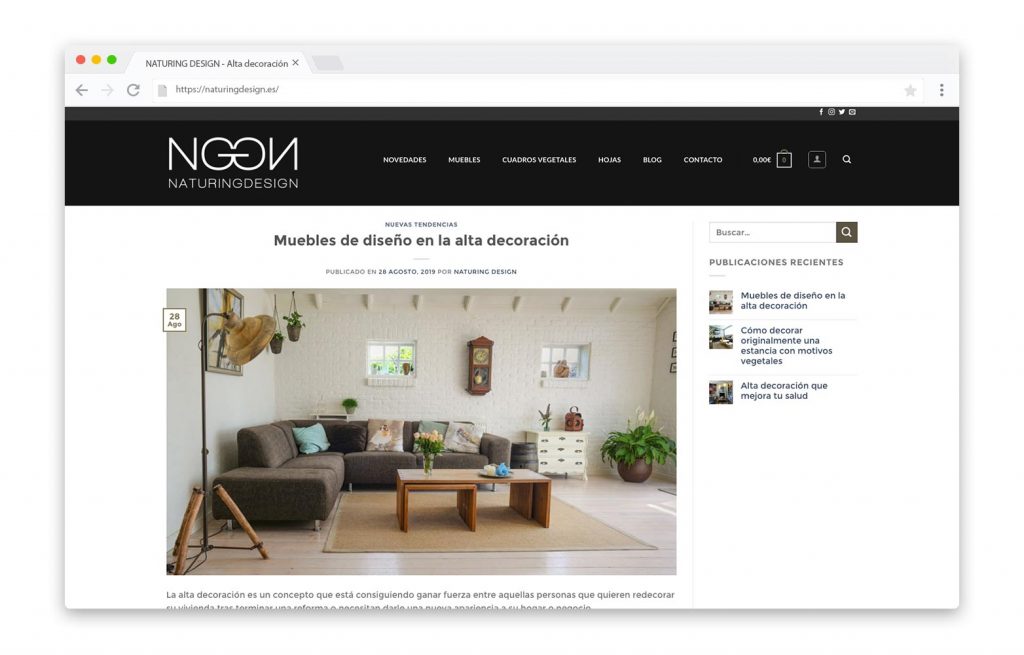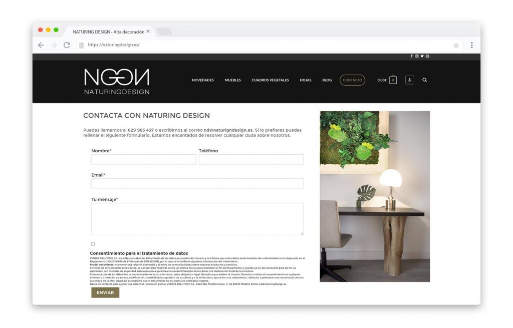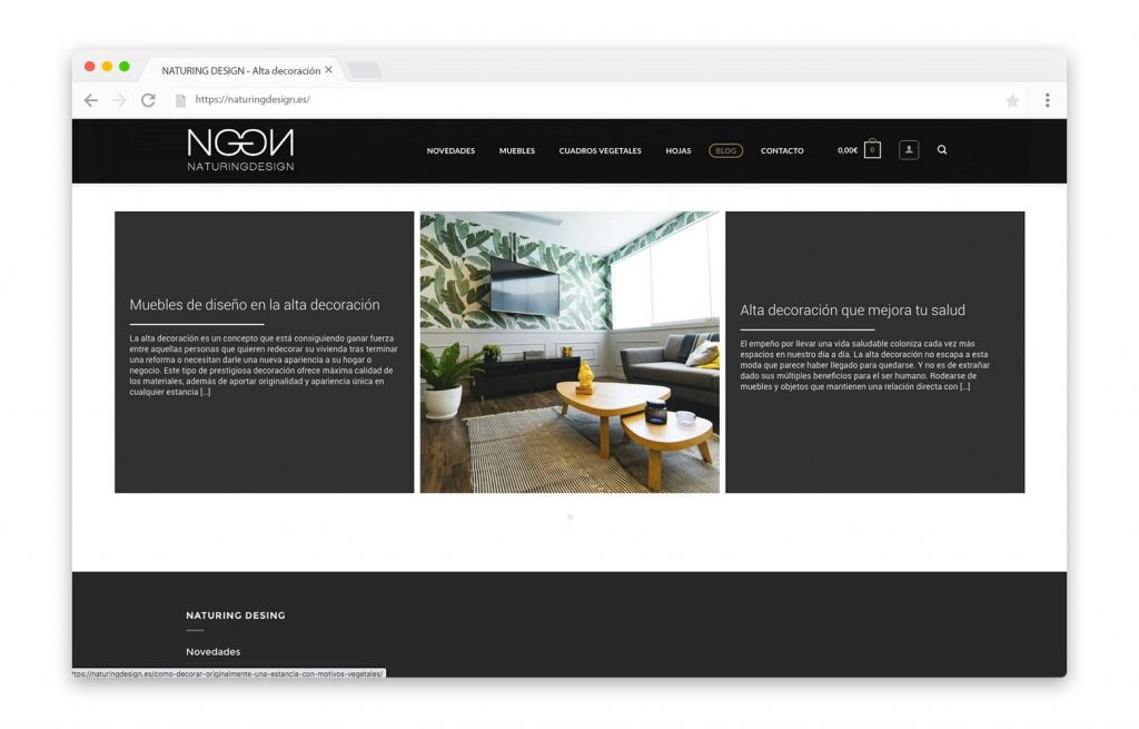 - DESCRIPCIÓN DEL TRABAJO: Diseño de la web de NAturing Design con catálogo de productos y blog.
